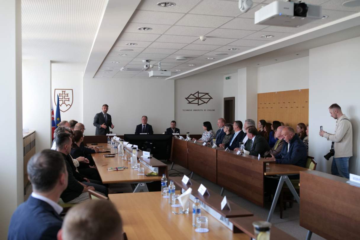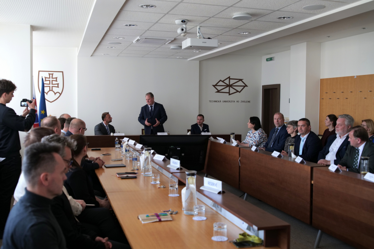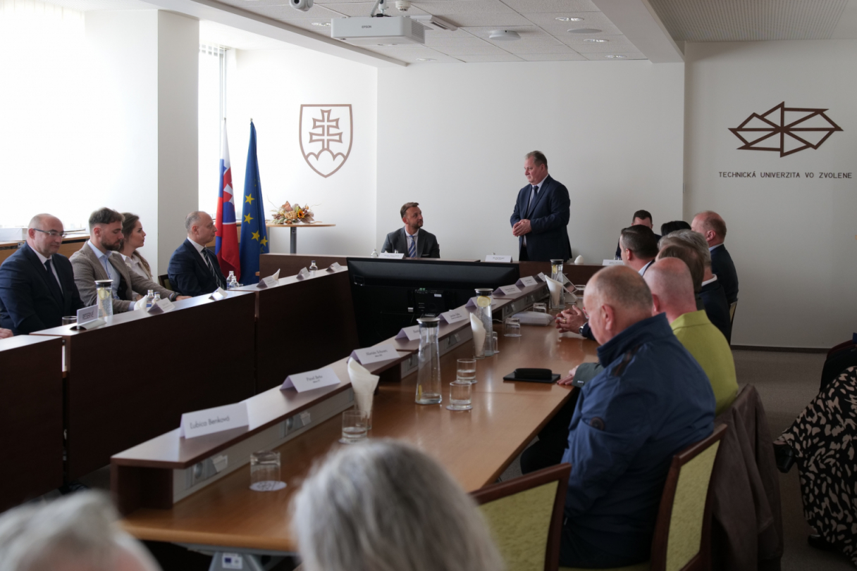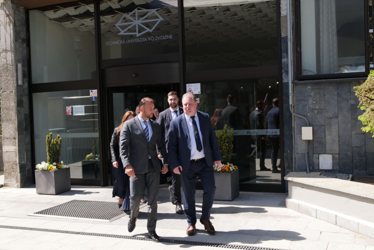 Zvolen, 28. apríla 2026 – Na Technickej univerzite vo Zvolene sa za účasti rektora Rudolfa Kropila uskutočnila návšteva ministra vnútra SR Matúša Šutaja Eštoka a štátneho tajomníka Ministerstva školstva, výskumu, vývoja a mládeže SR Róberta Zsemberu. Počas návštevy sa uskutočnila spoločná diskusia zástupcov štátnej správy, vedenia univerzity a študentov zameraná na bezpečnosť univerzitného prostredia a ochranu mäkkých cieľov.