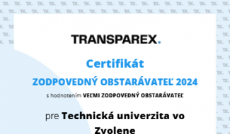 Technická univerzita vo Zvolene potvrdila dlhodobú vysokú úroveň riadenia verejných zdrojov. Portál TRANSPAREX jej za rok 2024 udelil prestížne ocenenie Zodpovedný obstarávateľ...