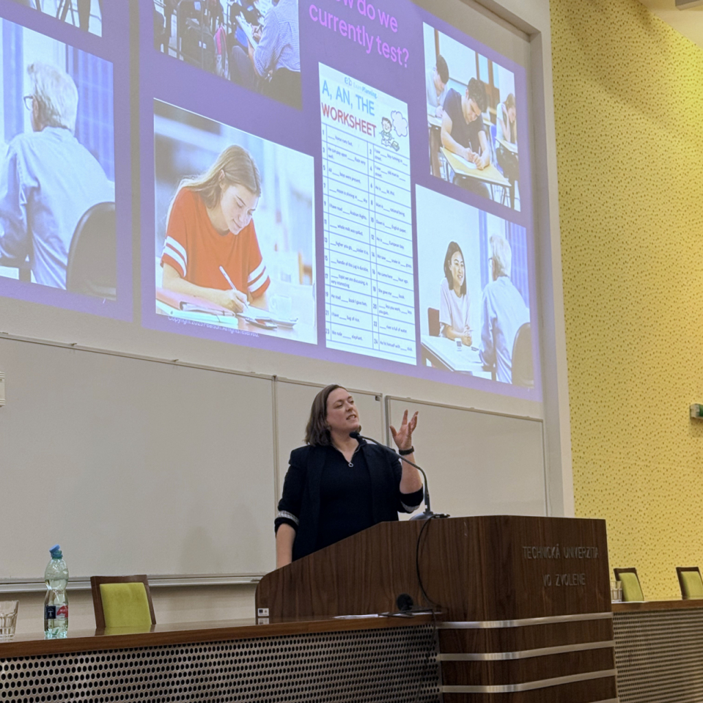 Súčasťou programu boli dve odborné prednášky Claire Dormanovej, ktorá pôsobí vo vydavateľstve Pearson ako konzultantka pre vzdelávanie. Vo svojich vystúpeniach sa venovala hodnoteniu jazykových kompetencií s využitím umelej inteligencie a možnostiam uplatnenia jazykovej certifikácie v praxi.